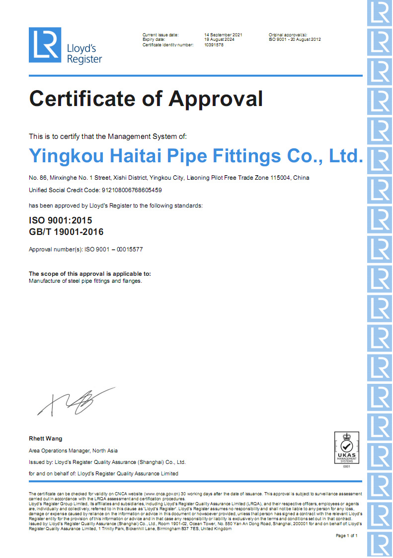 營(yíng)口海泰金屬管業(yè)有限公司成立于2001年,是專業(yè)生產(chǎn)管道配件的制造經(jīng)營(yíng)企業(yè)。公司占地面積兩萬(wàn)五千平方米,坐落于中國(guó)遼寧省港口城市營(yíng)口。營(yíng)口一市兩港(營(yíng)口港、鲅魚(yú)圈港),東臨大連港四季通航,陸路運(yùn)輸四通八達(dá)交通便利。